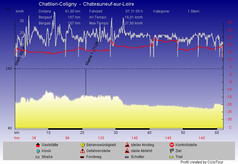 | Marke 1 (11:26:15) | 21,09 km | 150 m |